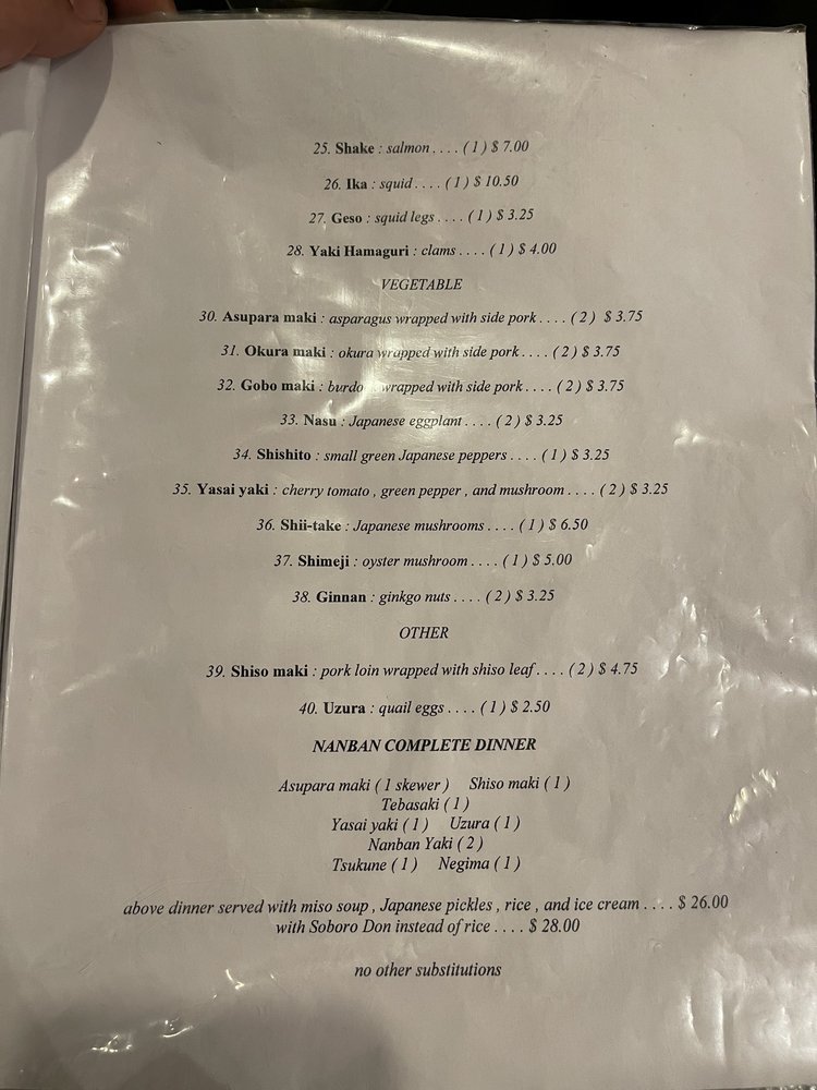Nanban-Kan is a hidden gem for yakitori enthusiasts in Los Angeles. Located on Santa Monica Blvd, this Japanese izakaya offers a cozy and inviting ambiance with a focus on authentic and expertly grilled skewers. The menu boasts a variety of meats, seasonings, and vegetarian options, ensuring there is something for every palate. The impeccable service, knowledgeable staff, and passion for yakitori make dining at Nanban-Kan a memorable experience. Specializing in charcoal-grilled skewers, this restaurant has been serving up delectable dishes since 1975, showcasing a level of care and attention to detail that defies expectations. From the flavor explosion of the Tsukune to the perfectly charred vegetables wrapped in bacon, each skewer is a masterpiece. Nanban-Kan is a must-visit destination for those seeking an authentic and delicious yakitori experience.